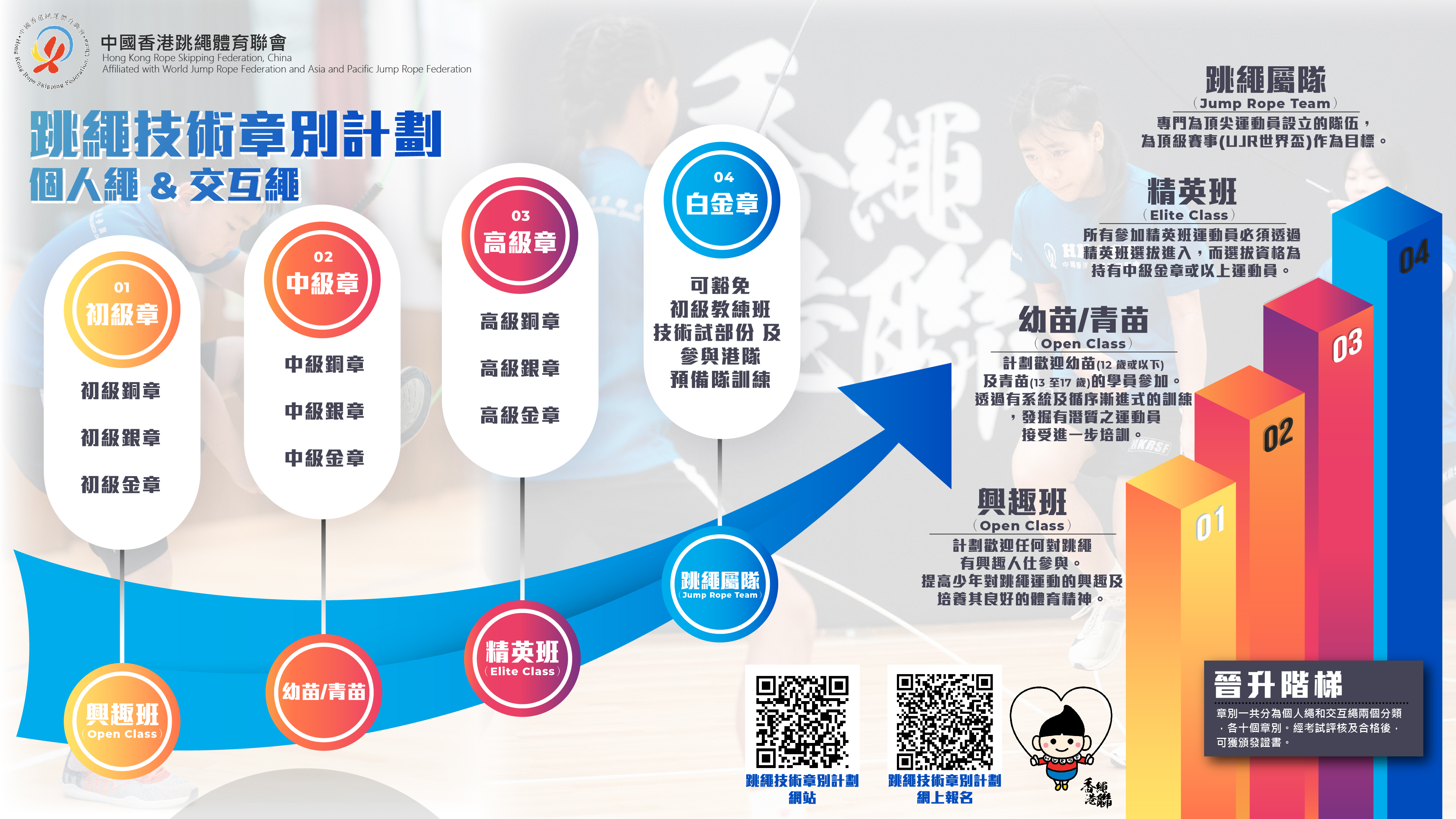 計劃目的旨在發掘有潛質的運動員,提高跳繩愛好者及大眾對跳繩運動的認識。計劃內容會以循序漸進式加強難度,鼓勵運動員進步和提升技術,透過技術評核試鑑定運動員的水平,讓運動員的技術獲得認同。計劃亦同時銜接全港跳繩梯隊訓練計劃,考取指定章別後,能參與對應水平的訓練班,進行系統和持續性訓練。